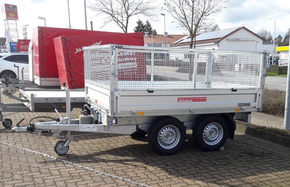 Rückwärtskipper, Hochlader, Zweiachsig, gebremst, Aluminium-elox. Bordwände, hydraulisch kippbar